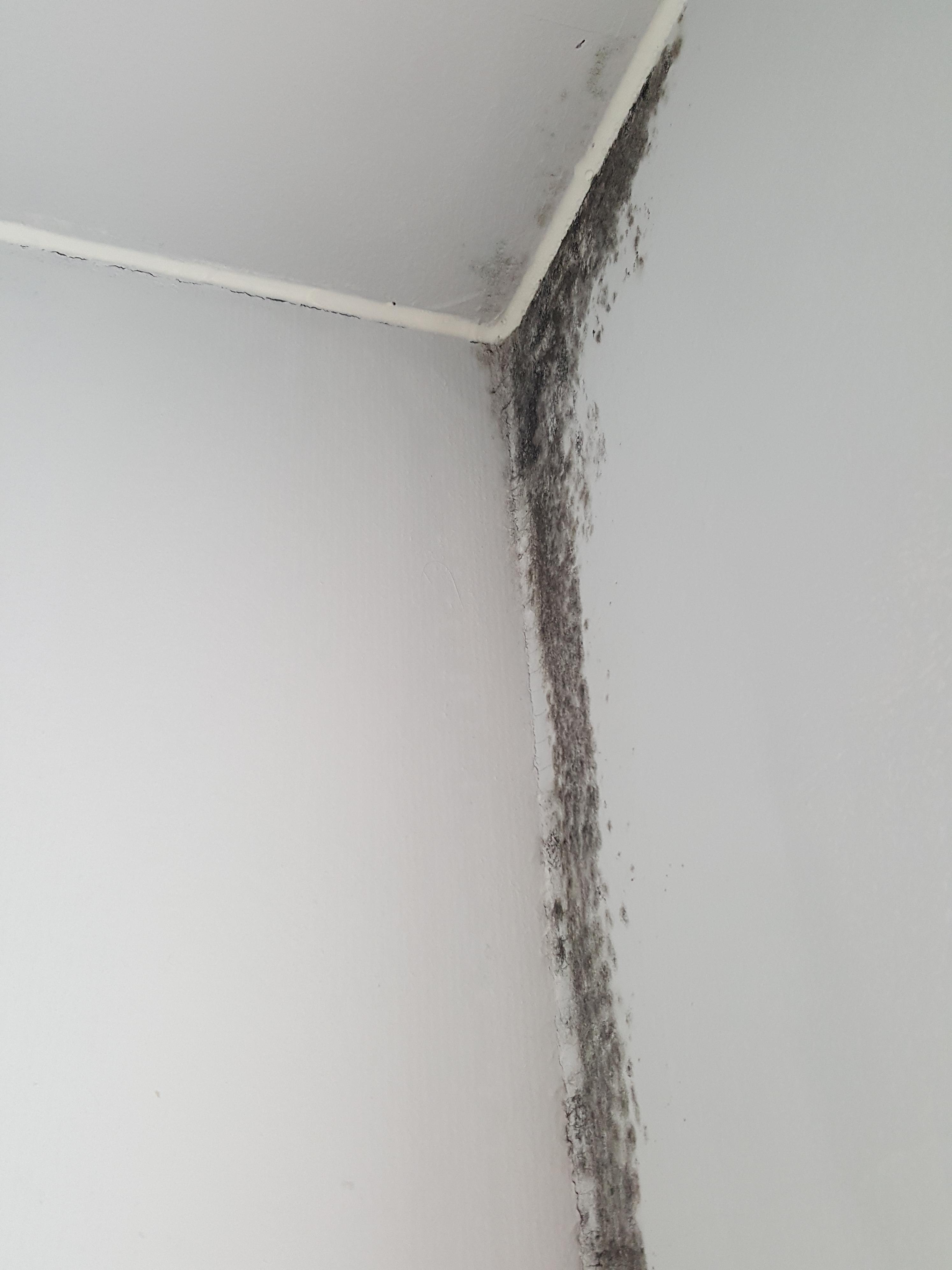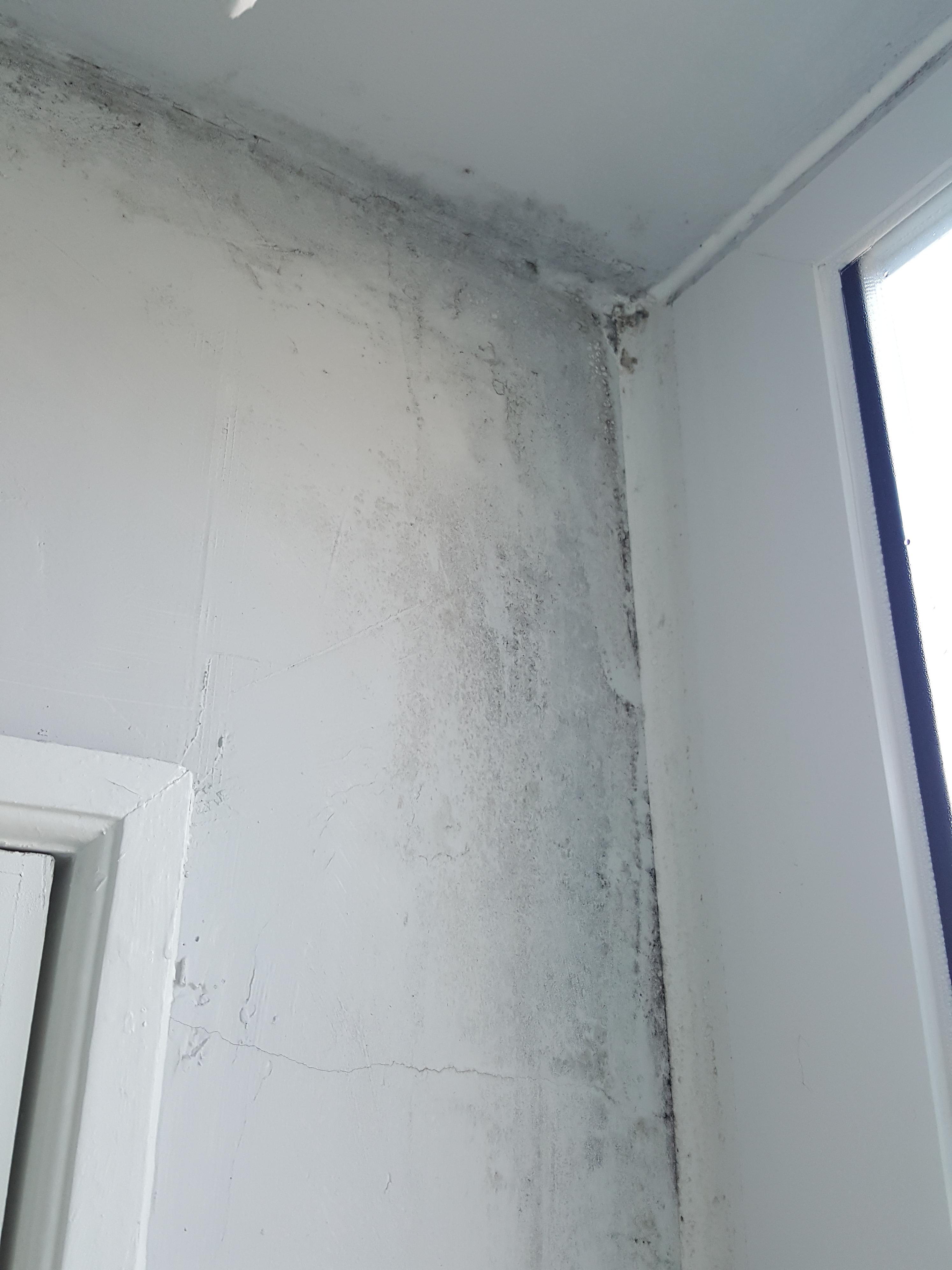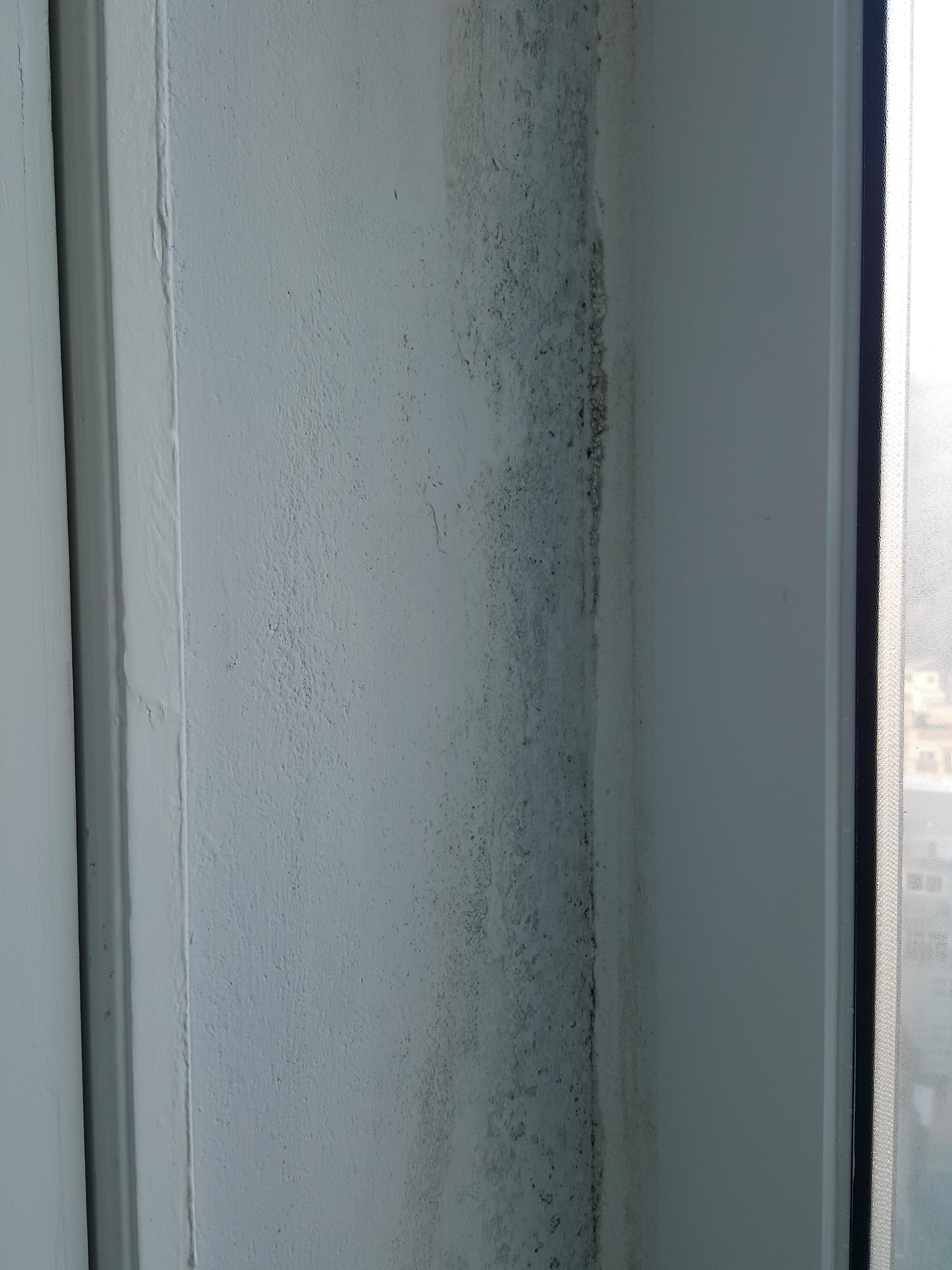 발코니 외벽쪽 벽면에 잔뜩 생긴 곰팡이