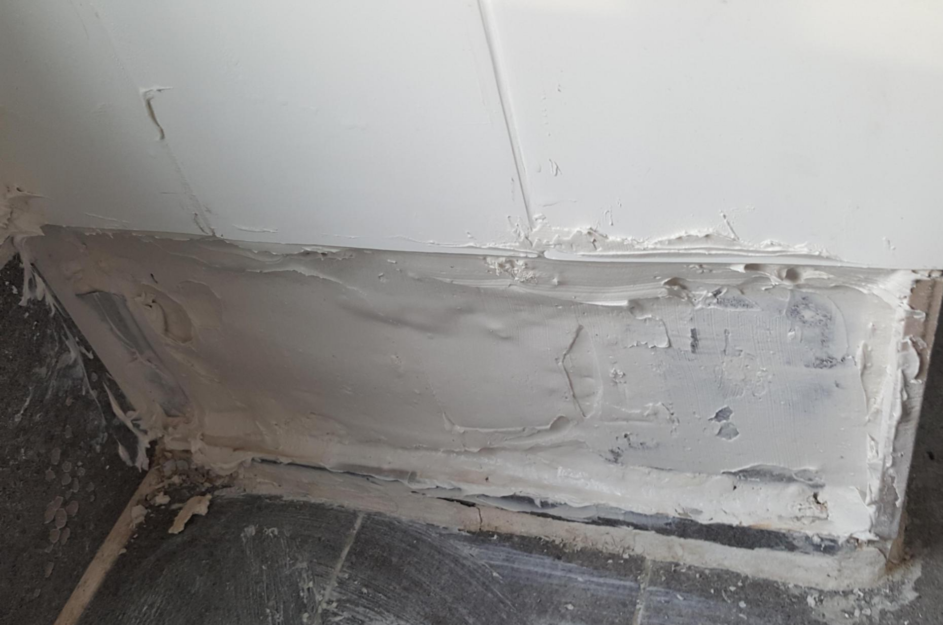 일단 핸디코트로 빈틈을 메꿨다. 핸디코트로 아예 마감까지 할 지 다시 깨진 타일을 붙일지는 고민 중이다.